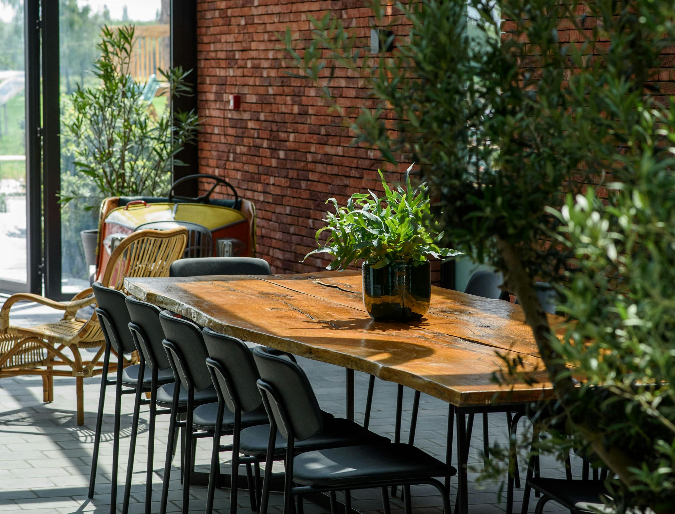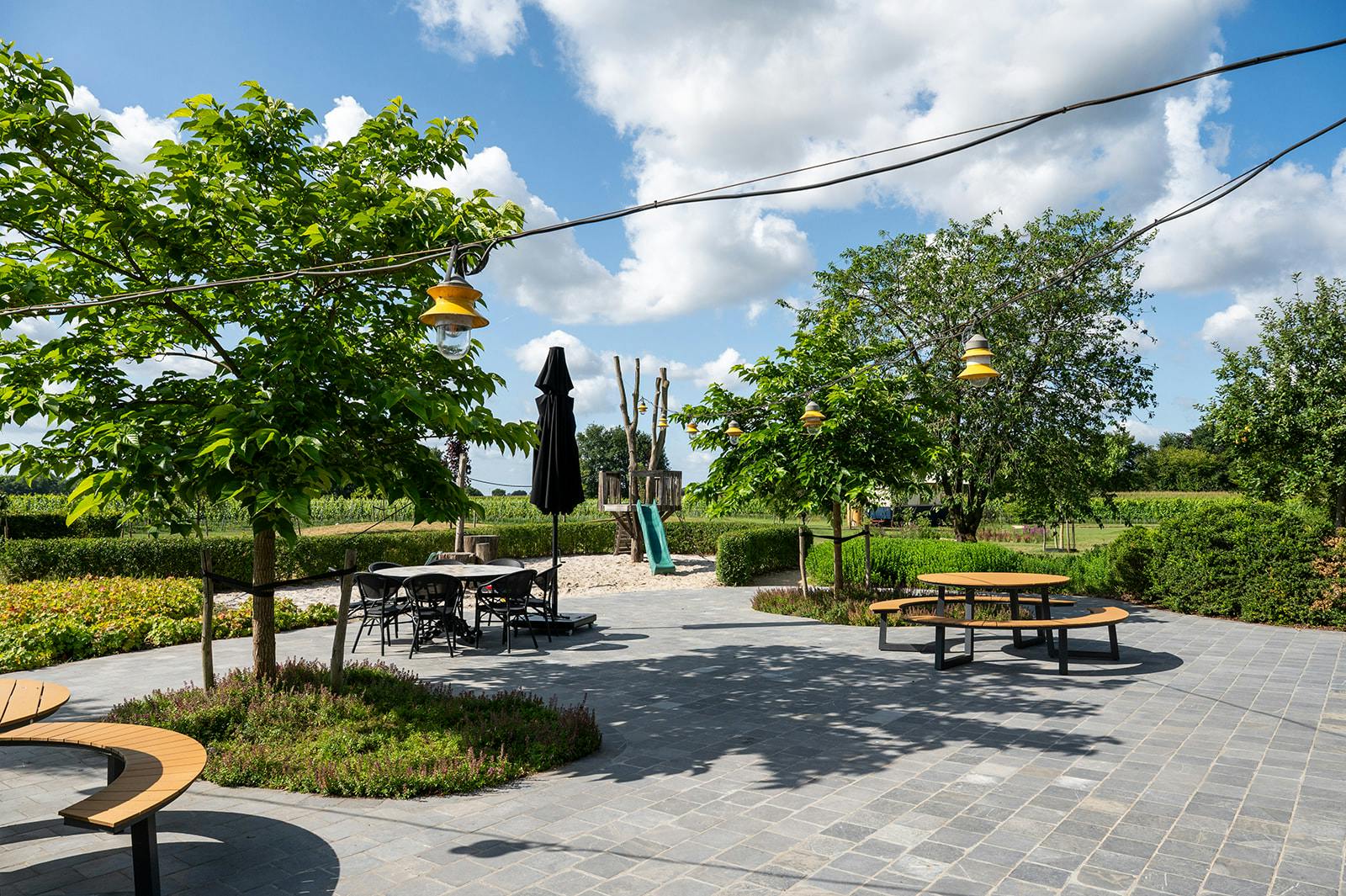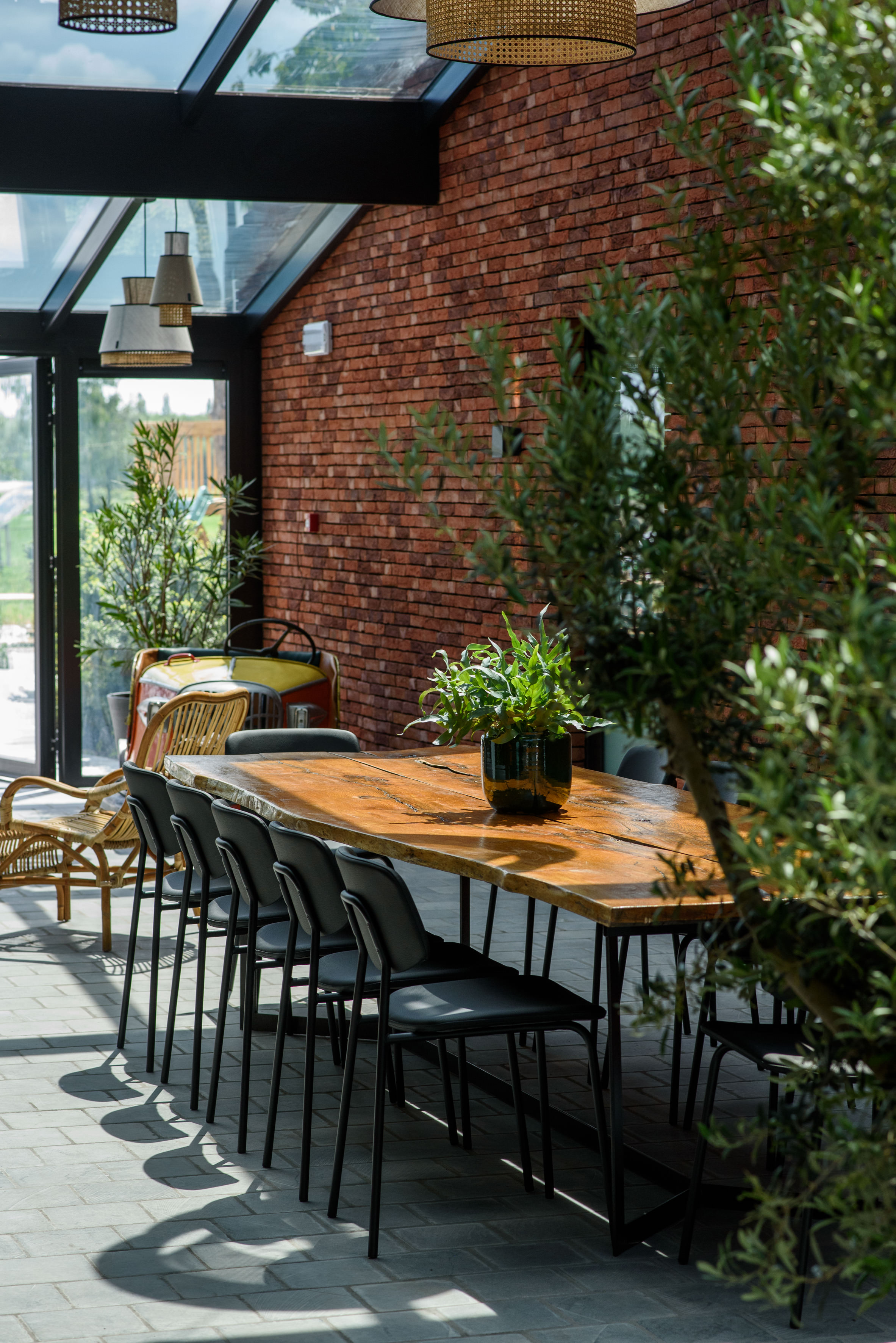 Bij koelere temperaturen kan je gezellig zitten in een van de zithoekjes of aan de grote tafel in de wintertuin. De grote olijfboom en andere zuiderse planten zorgen voor een echt buitengevoel. De kinderen kunnen zich uitleven in de speelkamer met klimtoren, glijbaan en grote bouwblokken.